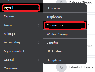 Click on Payroll and choose Contractors to show the contractors name.