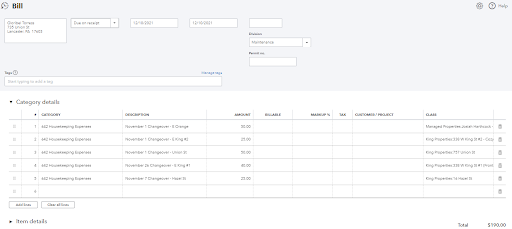 Check for any additional notes in the email and for things that the cleaner purchased on behalf of the company.